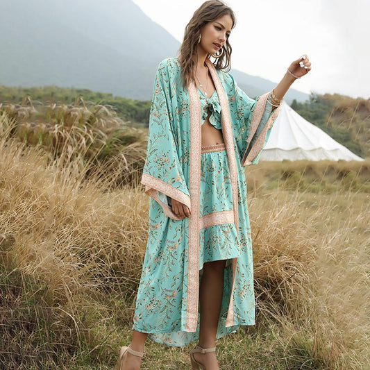 Bohemian Beach Vacation Print Sunscreen Cardigan with Shawl