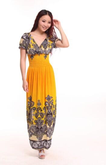 Spring and Summer New Beach Skirt V-Neck Short Sleeve Bohemian Dress
