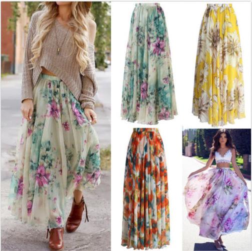 BOHO Womens Floral High Waist Long Maxi Full Skirt Holiday Party Evening Beach Sun Skirt