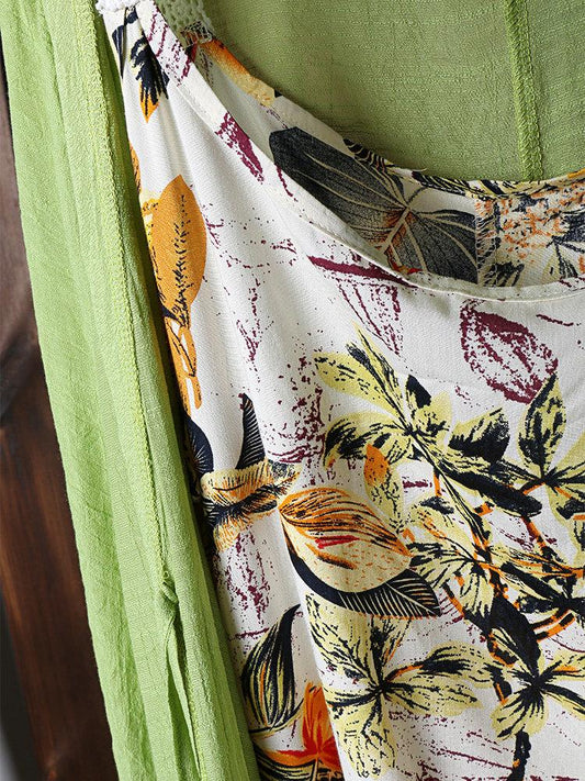 Vintage Bohemian Printed Lace Two-Piece 3/4 Sleeve Dress