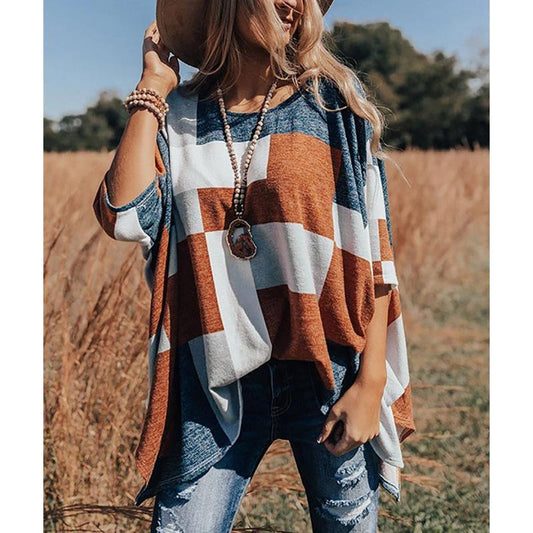 Retro Printed Bat Sleeve V-neck Holiday Bohemian Loose Dress