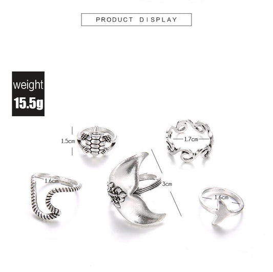 Bohemian Accessories Geometric Turtle Fishtail 5 Piece Sets Ring