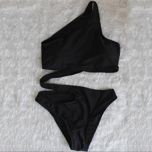 Solid Color One-Piece Sexy Bikini Look Swimwear