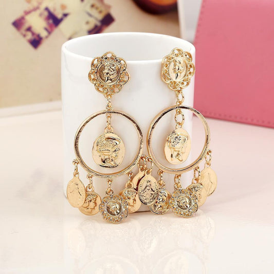 Baroque Mississippi Style Head Coin Circle Hollow Earrings