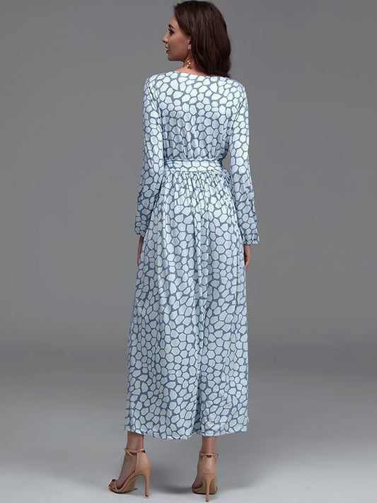2018 New Long Sleeve Solid Color Splice Maxi Dress