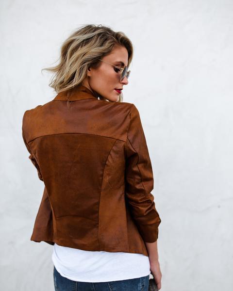 Women Casual Slim Solid Color Long Sleeve Zipper Outwear