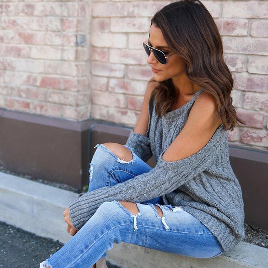 Knit Cold Shoulder Long Sleeve Winter Casual Sweater