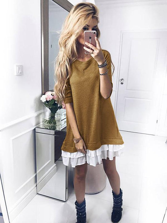 Solid Color Splice Mini Dress