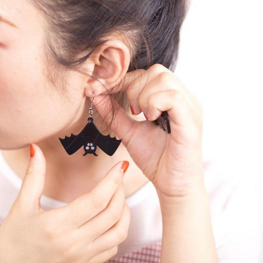 Retro Fashion Halloween Black Bat Hook Earring Necklace