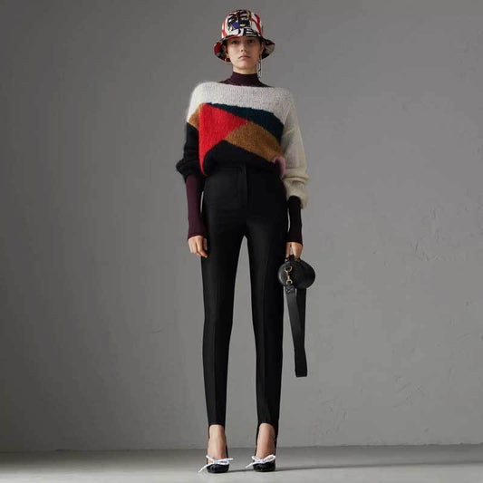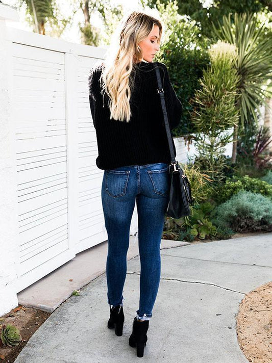 Casual Autumn Long Sleeve Loose Contrast Color Knit Sweater