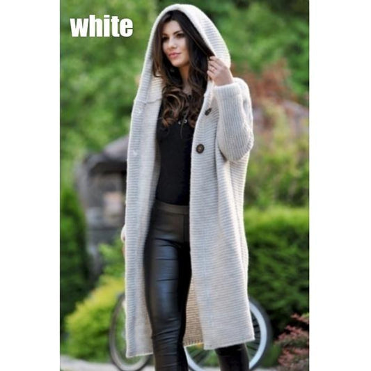 Casual Long Sleeves Knitted Hooded Cardigan Overcoat