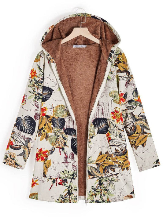 Retro Long Sleeve Leaves Floral Print Hoodie Outwear