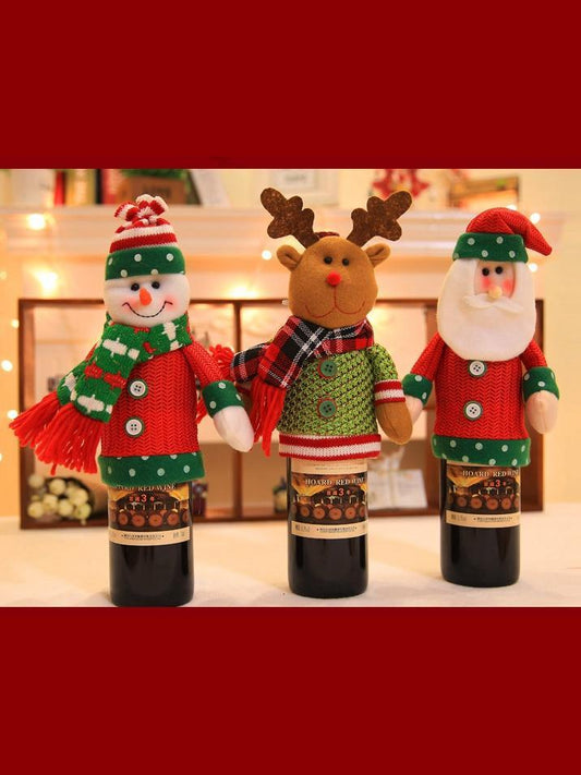 Christmas figurines champagne bottle set
