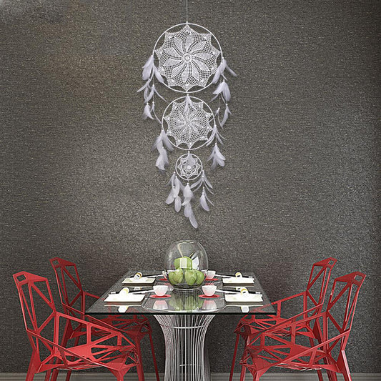Handmade White Feather Boho Dream Catchers Wall Hanging Ornament