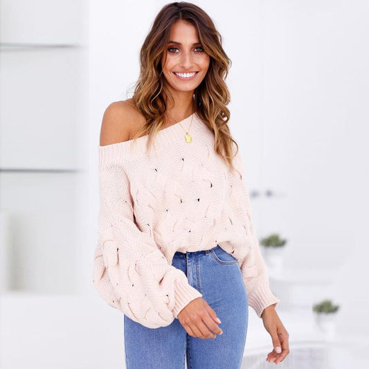 Solid Color Off The Shoulder Loose Casual Knit Sweater