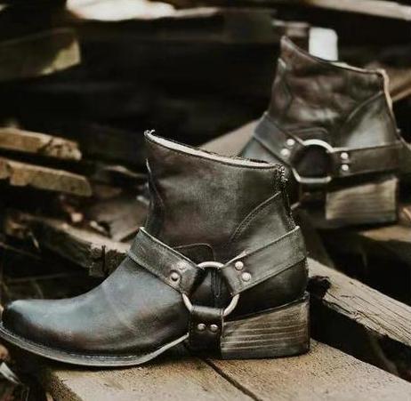 Women Pu Booties Casual Zipper Low Heel Ankle Boots