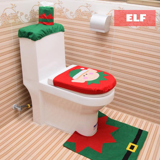 3-Piece Snowman Santa Toilet Seat Cover and Rug Set Christmas Decorations