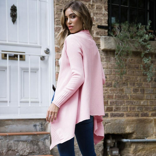 Casual Pink Solid Color Knit Cardigan Sweater