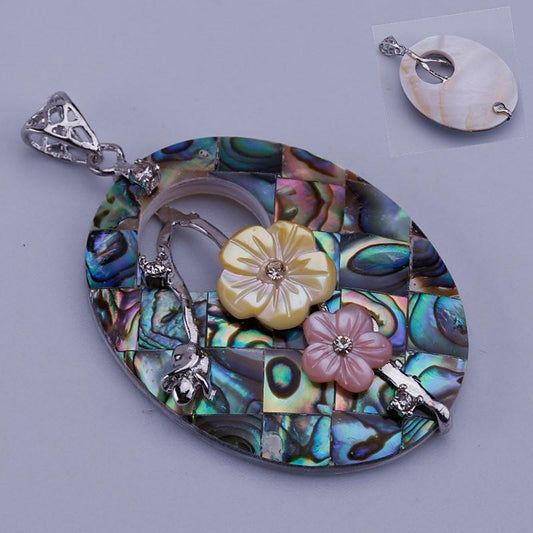 Oval Two Flowers Abalone Shell Necklace Pendant