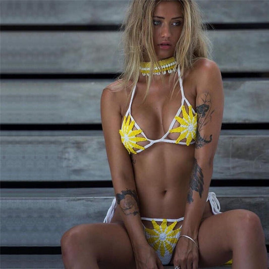 Sexy Hollow Crochet Tassel Beach Swimwear G-string Bikini Sets