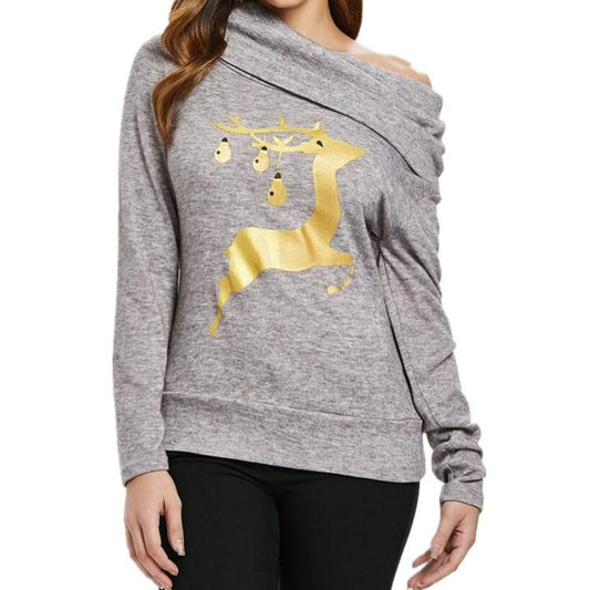 Christmas Deer Printed Heap Collar Long Sleeve Hoodie