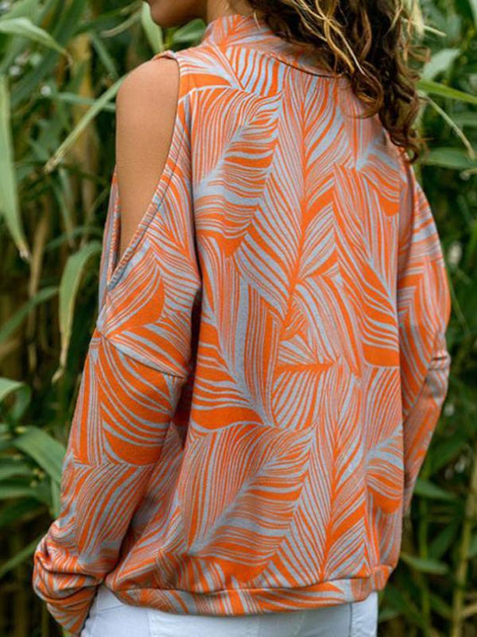 High Neck Long Sleeve Orange Floral Print Knitted Sweater