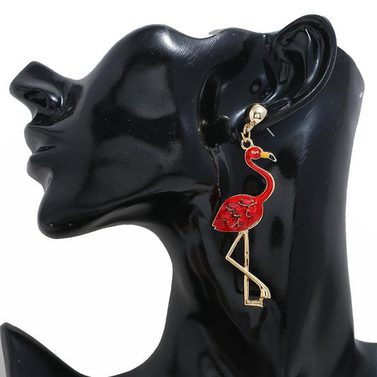 Hot new long tassel flamingo ladies Christmas earrings