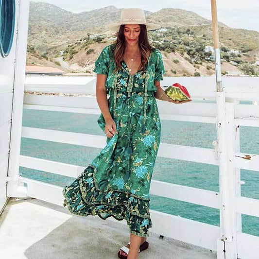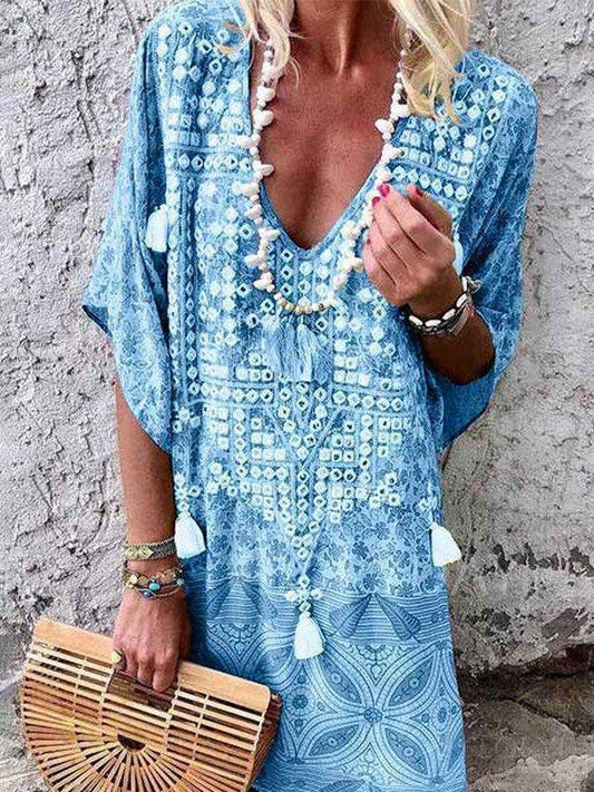 Bohemian V-neck Print Midi Dress