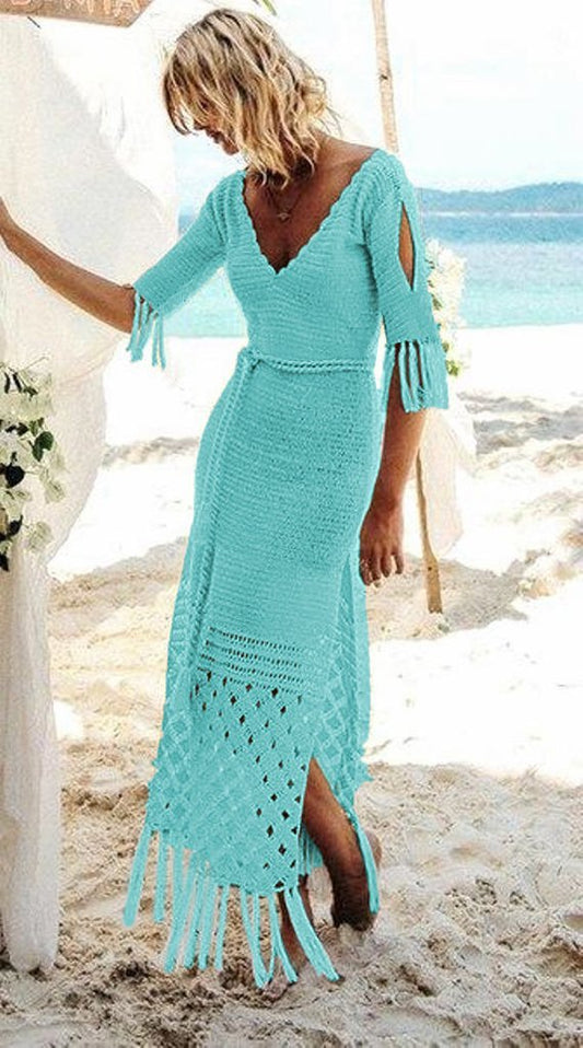 Sexy Deep V Sling Holiday Chiffon Dress