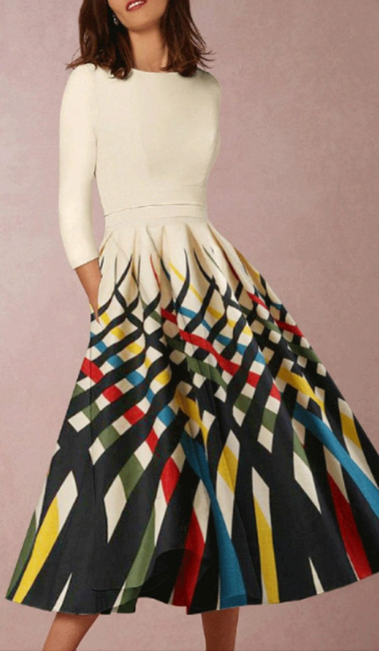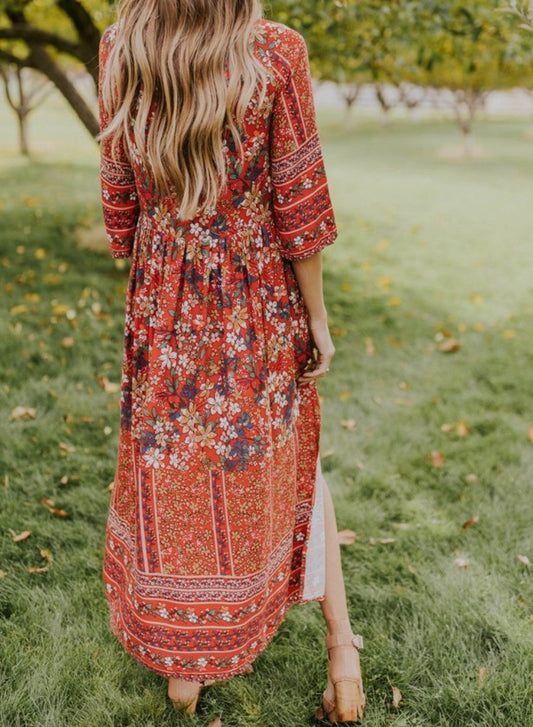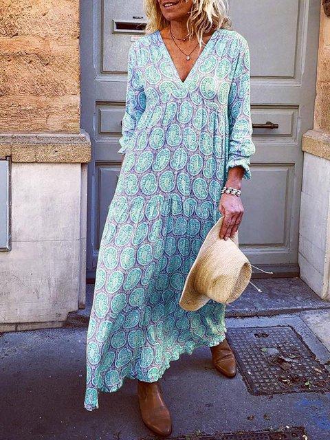 Digital print vintage temperament long bohemian dress