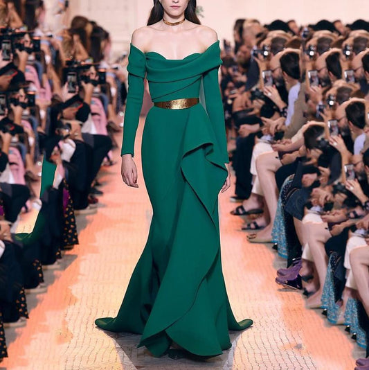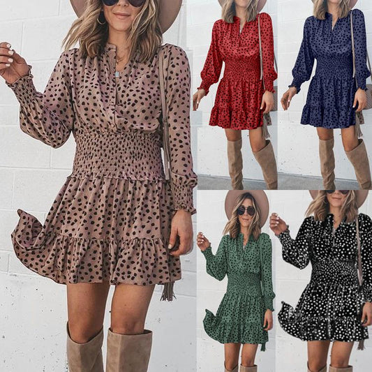 New season long sleeve lantern sleeve round neck waist dress