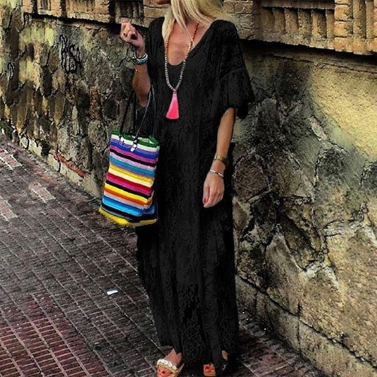 New women's trumpet short sleeve V-neck lace dress