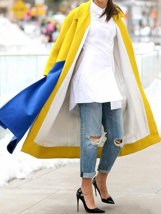 Fashion geometric print color loose wool long coat