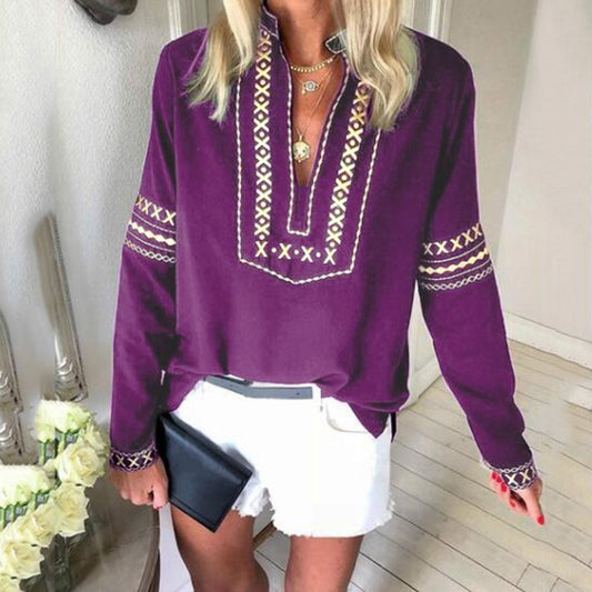 ladies tops and blouses Vintage Women's Loose Long Sleeve National Style Print Tops Blouse