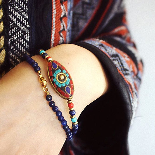 Nepalese Tibetan jewelry Bohemian necklace female clavicle chain bracelet brass lapis lazuli retro ethnic style