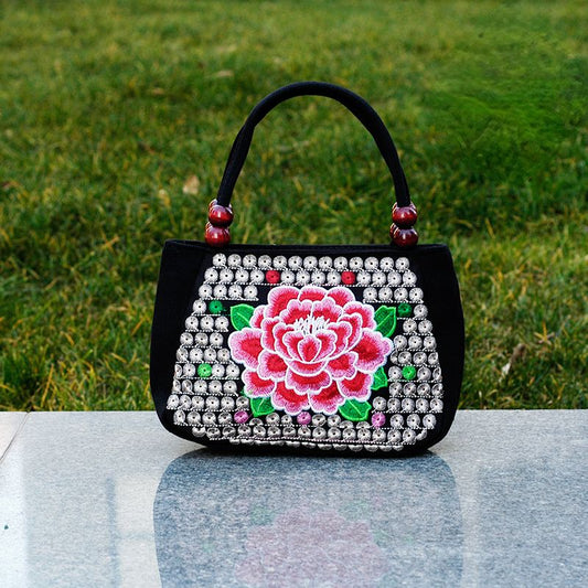 Ethnic Women's Bag Embroidered Hand-held Canvas Bag Shopping Hand-held Coin Purse Mini Bag.