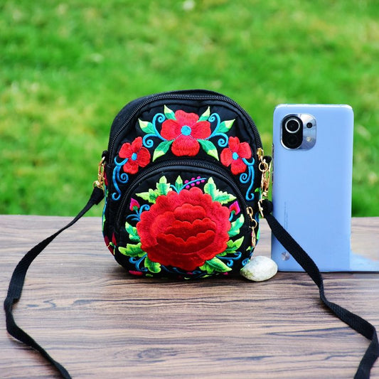New Ethnic Girl Slung Small Bag Embroidered Canvas Coin Purse Casual Joker Shoulder Phone Bag