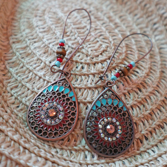 New national style personality retro hollowed out carved oil drop exaggerated Earrings