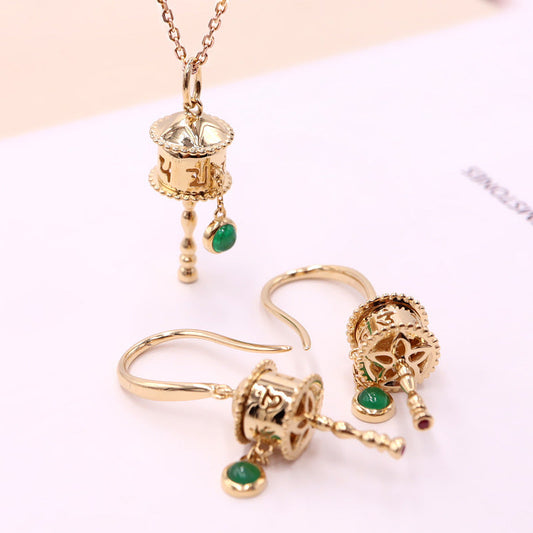Six-character mantra prayer wheel pendant can be turned to pray for peace and protect necklace & Earrings