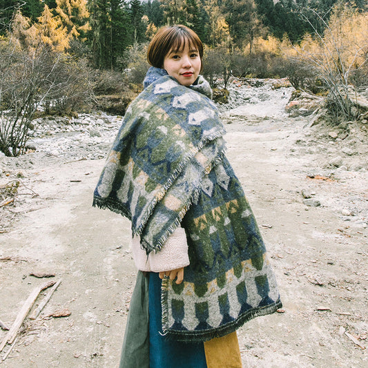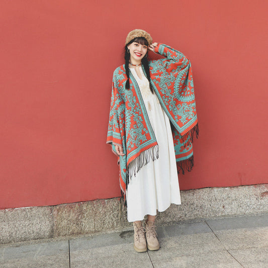 Spring and autumn ethnic style Cape travel warm Tibet imitation cashmere cape oversized Cape scarf