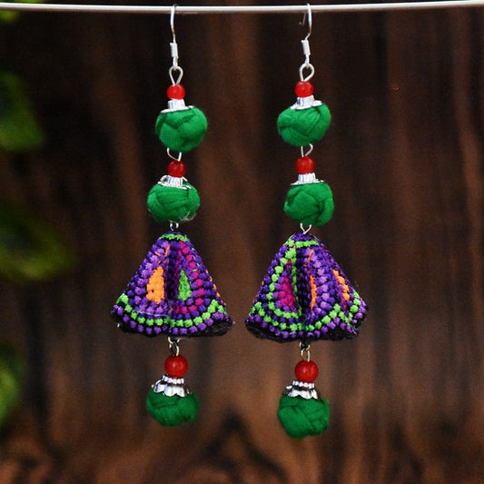 New handmade women's earrings ethnic style original Joker fabric colored ball embroidered earrings