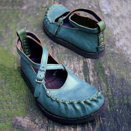 Vintage Artificial Leather Flats Slip On Cross buckle Solid Ladies