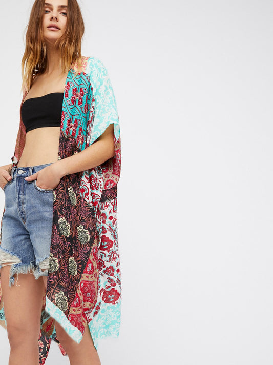Print Block Beack Out-of-the-shirt Bikini Swimsuit Women's Holiday Cape