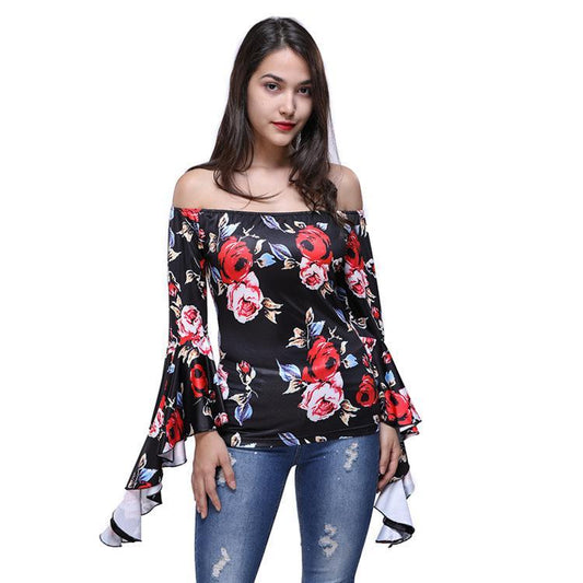 Sexy horn with a shoulder print slim long-sleeved shirt