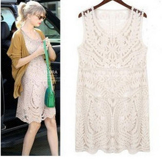 Naked Leisure Hollowed Out Full Lace Sleeveless Vest Dress Loose Sexy Dress