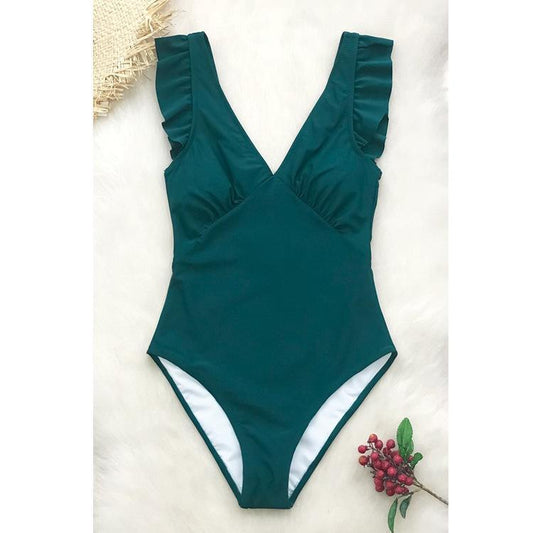 Asymmetric Ruffle Overlay High Waist Bikini Set