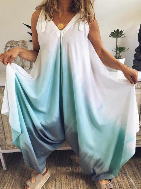 Gradual Sleeveless Round Collar Tie-dyed Impingement Jumpsuit