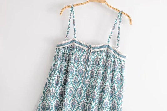Sexy Sleeveless Printed Lace Halter Long Dress