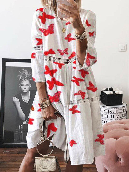 Bohemia The Stamp Long Sleeve V-Neck Casual Dress Female