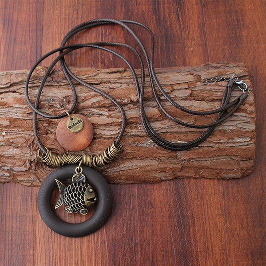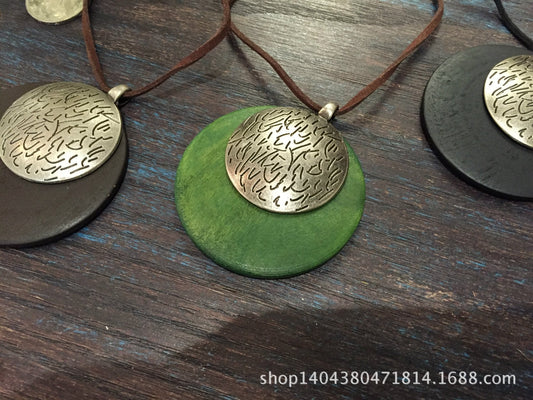 Retro National Style Manual Art Wood Long Necklace Wool Chain Cotton and Hemp Clothing Accessories